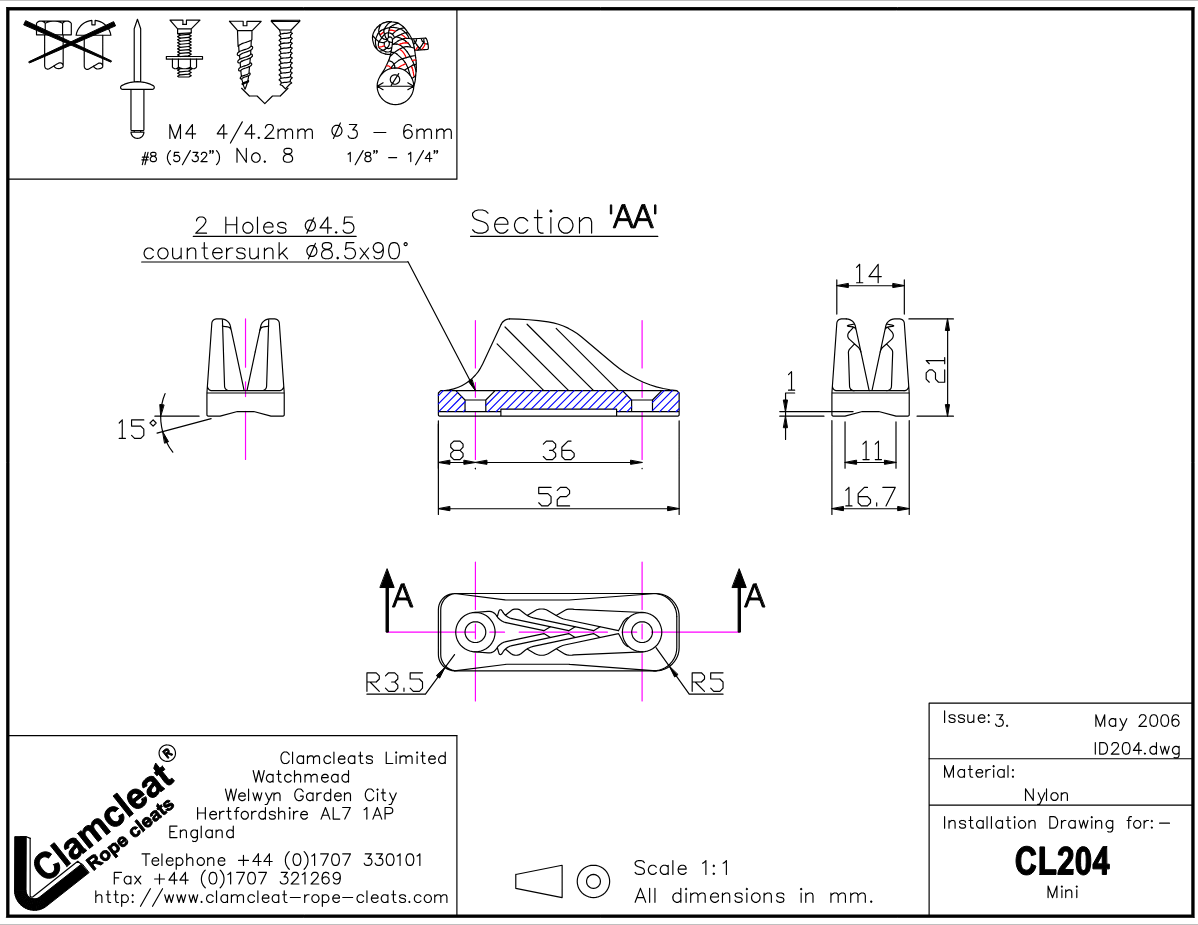 Расстояние между центрами отверстий - 36 мм. Диаметр отверстий - 4,5 мм.