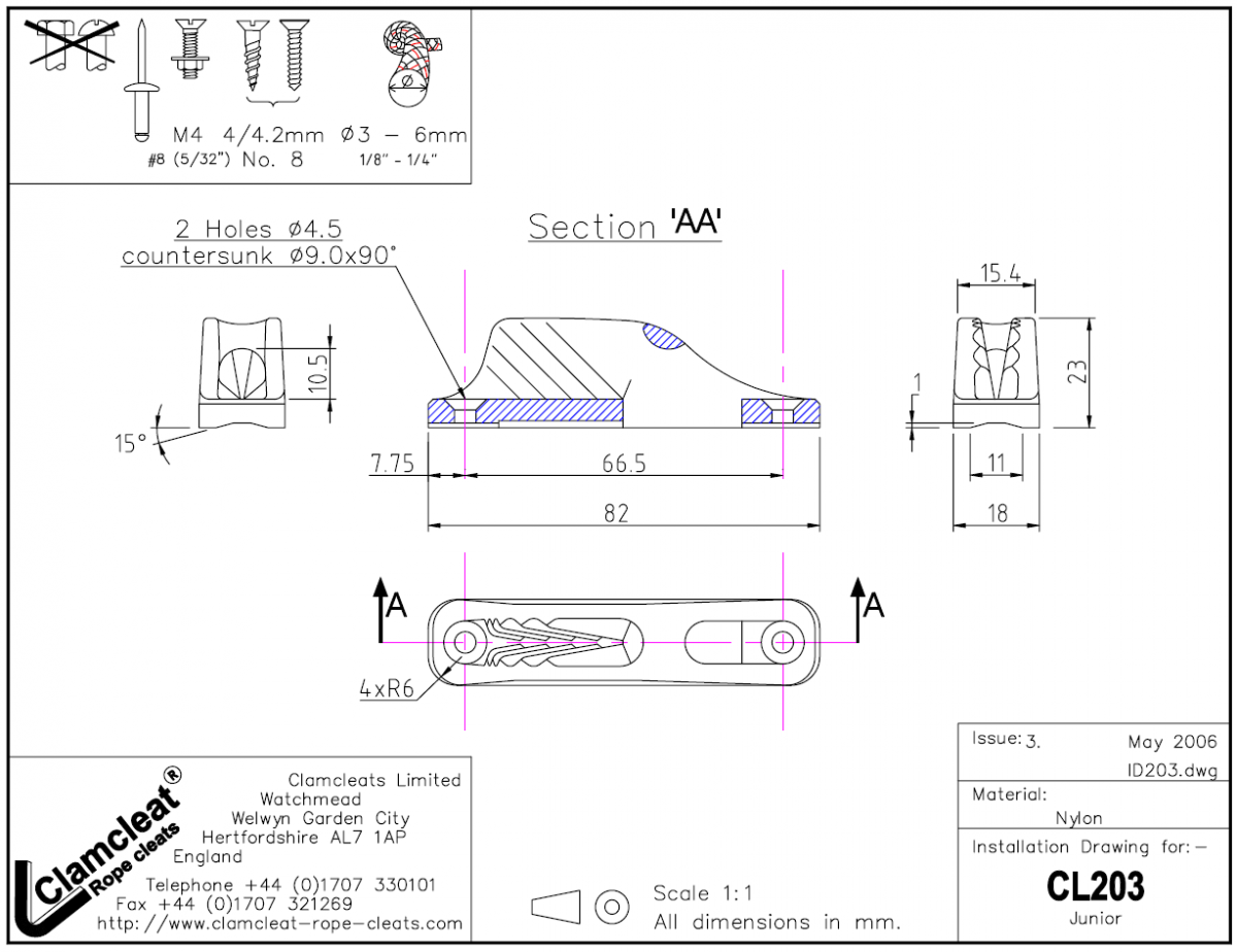 Нейлоновый щелевой стопор под веревку 3-6 мм.