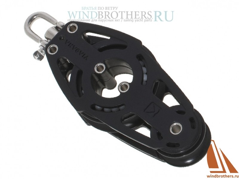 Очень легкий гоночный лонготакельный вертлюжный блок со скобой. Диаметр шкивов 57 и 37 мм под веревку до 10 мм. Шкивы подшипниковые на пластиковых шариках. Блоки этой серии имеют очень малый вес за счет перфорированного облегченного корпуса и применения пластика Delrin® в качестве материала щечек корпуса, шкивов и шариков в подшипниках. Максимальная рабочая нагрузка- 320 кг. Разрушающая нагрузка- 1080 кг.