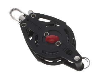 Очень легкий одношкивный гоночный вертлюжный блок с направляющей и отключаемой трещеткой. Диаметр шкива 57 мм под веревку до 10 мм. Шкив подшипниковый на пластиковых шариках. Материал шкива- кованый алюминий с PTFE анодированием. Блоки этой серии имеют очень малый вес за счет перфорированного облегченного корпуса и применения пластика Delrin® в качестве материала щечек корпуса и шариков в подшипниках. Вес- 115 гр. Максимальная рабочая нагрузка- 205 кг. Разрушающая нагрузка- 900 кг.