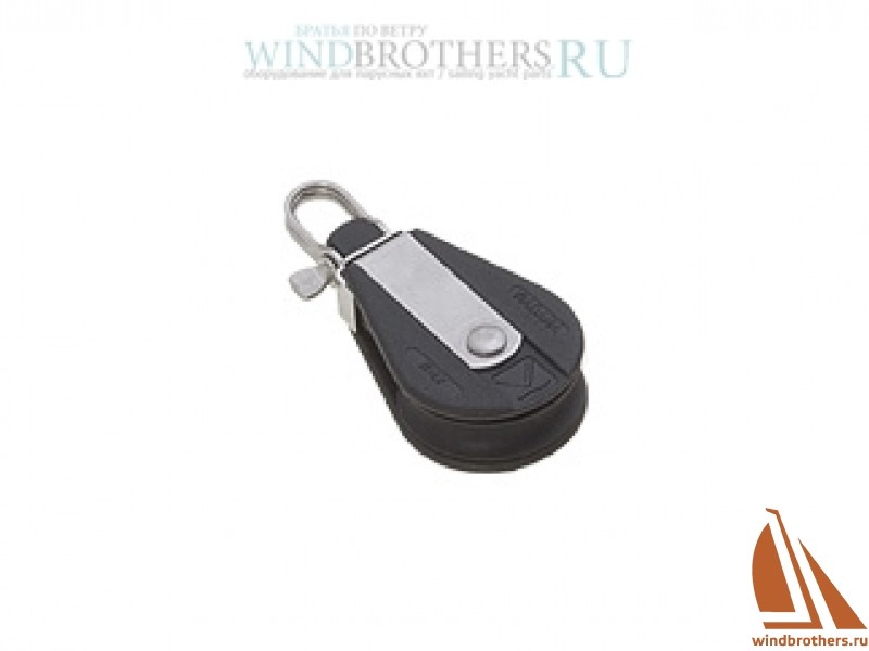 Одношкивный вертлюжный блок под трос. Диаметр шкива - 34 мм. Шкив - бесподшипниковый. Имеется возможность фиксации вертлюга в двух положениях. Материал корпуса - высокопрочный пластик, нержавеющая сталь. Материал шкива - анодированный алюминий с покрытием PTFE с центральной вставкой из высокопрочного пластика.